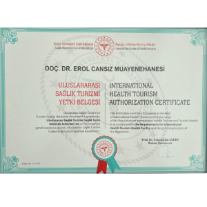 UNSERE KLINIK VERFÜGT ÜBER DAS VOM GESUNDHEITSMINISTERIUM DER REPUBLIK TÜRKEI AUSGESTELLTE ZERTIFIKAT ZUR INTERNATIONALEN ZULASSUNG FÜR GESUNDHEITSTOURISMUS.